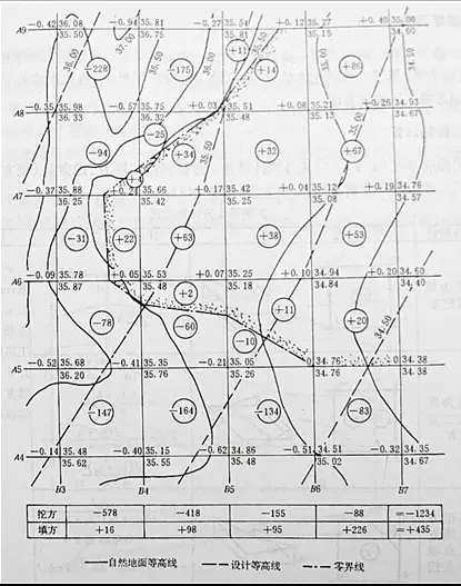 十五、施工高程的確定、標(biāo)注零界線、土方量的計(jì)算:
