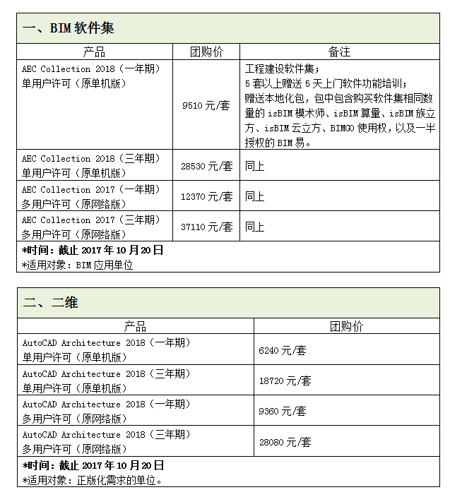 根據(jù)協(xié)會《關(guān)于征集自愿參加歐特克BIM軟件優(yōu)惠團(tuán)購意向的通知》,經(jīng)與歐特克(中國)有限公司和服務(wù)商多次協(xié)商,確定本次BIM軟件優(yōu)惠團(tuán)購價(jià)為: