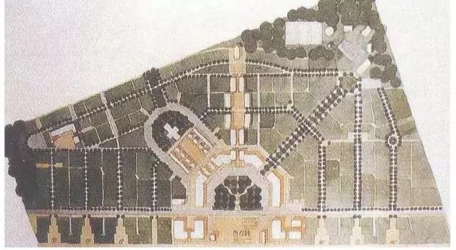 著重由多向的街道交匯成多個廣場節(jié)點并形成由街道圍合的封閉組團,從而整合成一個開放與封閉組合的動靜相宜的城市格局。