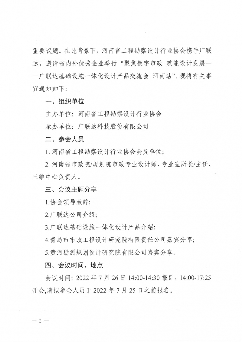 省協(xié)會關(guān)于召開河南省廣聯(lián)達基礎(chǔ)設(shè)施一體化設(shè)計產(chǎn)品交流會的通知