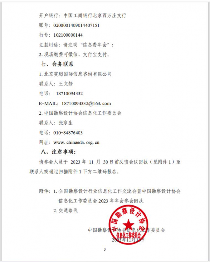 附件:《中國勘察設(shè)計(jì)協(xié)會(huì)信息化工作委員會(huì)關(guān)于召開2023年全國勘察設(shè)計(jì)行業(yè)信息化工作交流會(huì)暨中國勘察設(shè)計(jì)協(xié)會(huì)信息化工作委員會(huì)2023年年會(huì)的通知》(中設(shè)協(xié)信字〔2023〕21號)