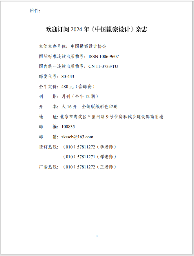 中設(shè)協(xié)關(guān)于做好《中國勘察設(shè)計雜志》2024年度征訂工作的通知