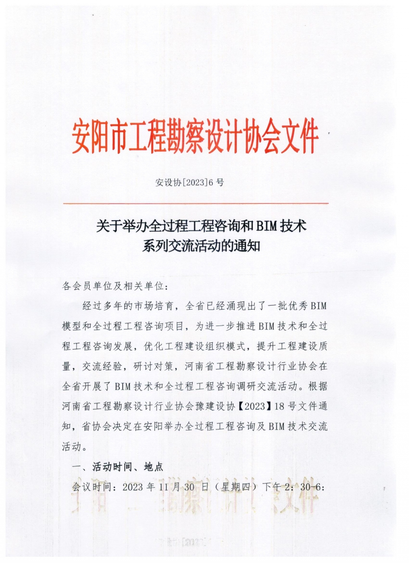 關(guān)于舉辦全過程工程咨詢和BIM技術(shù)系列交流活動(dòng)(安陽站)的通知
