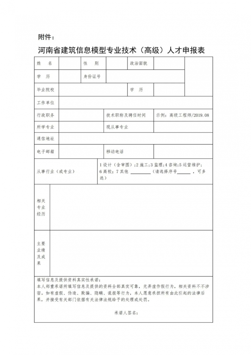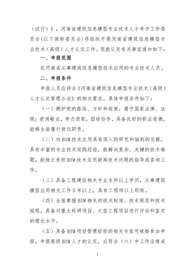 關(guān)于組織開展河南省建筑信息模型專業(yè)技術(shù)(高級)人才認(rèn)定工作的通知