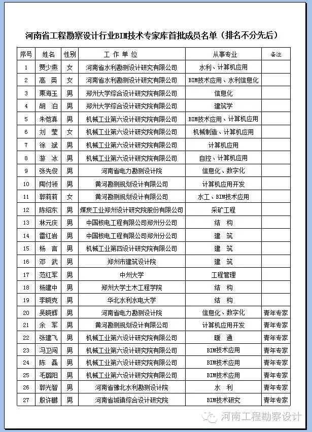 附件:1.河南省工程勘察設(shè)計行業(yè)BIM技術(shù)專家?guī)焓着蓡T名單